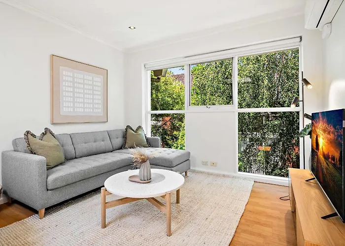Das Bright 2-Bed Apartment In South Yarra Melbourne City in Melbourne City befindet sich etwa 3 Kilometer von der St. Pauls Kathedrale und lediglich 20 Gehminuten vom Royal Botanic Gardens Melbourne entfernt. Dieses Apartment verfügt über eine Terrasse, die einen Blick auf die Stadt bietet.